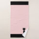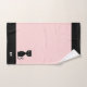 Gato preto e monograma no conjunto de toalhas de banho preto e rosa. Imagem de gato apenas em um canto. Design para solteiros e casais elegantes!