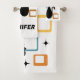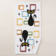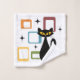 Ilustração colorida do estilo do Meio século abstrato com gato preto, estrelas pretas e ornamentação colorida em fundo branco. Você pode adicionar seu nome/monograma para personalizar o item.