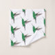 Padrão de beija-flor verde no conjunto de toalhas do banheiro.