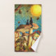 Uma bela imagem de dois gatos sentados sobre um cogumelo gigante em uma floresta cheia de cogumelos observando as folhas do outono caírem contra o sol e o céu azul para criar uma maravilhosa foto de uma terra natal. .