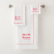 Na moda, Sr. e Sr. toalha personalizada para os noivos recém-casados em branco e vermelho, com roteiro editável, nome e data de casamento estabelecida