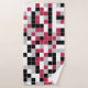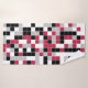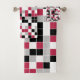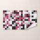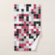Este conjunto colorido de toalhas de banho apresenta um padrão geométrico multicolorido em magenta de tendência, preto, cinzas e branco com uma grelha branca. Os quadrados são coloridos em um padrão aleatório e você pode editar as cores na ferramenta Design para combinar com o esquema de cores do banheiro.