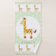 Este design de toalha unisexo adorável e giro apresenta uma girafa e bolinhas aquáticas, com espaço para você adicionar seu nome em uma bela tipografia. Perfeito para o seu bebê ou filho! Vejam o resto da nossa coleção para outros animais fofos de safari.