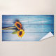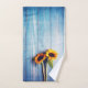 Conjunto De Toalhas Girassol na Parede de Madeira Azul