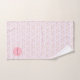 Um conjunto bonito e elegante de toalhas personalizadas para o banheiro de uma menina. Apresenta um padrão divertido de vacas engraçadas, estilo desenhado à mão, assim como flores pequenas e femininas. Monograma e nome na caligrafia de script. Um presente de Natal ou aniversário bonito para uma menina que ama bolinhas e cor rosa.