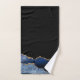 Um elegante geode preto azul-chic com veias cor-de-brilho douradas e um conjunto inicial de toalhas douradas.