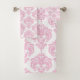 Conjunto De Toalhas Glamour Real Rosa e Branco Damask Menina Glam