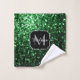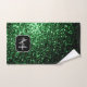 Personalize com o seu nome e nome inicial - uma toalha de casa de banho falso e cintilante para ela. Brilhante brilho brilhante verde brilhante brilhante brilhante brilha. Foto de faíscas verdes não reluz!