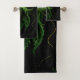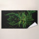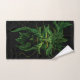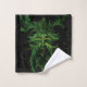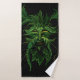 Uma cara verde de lore celta num pano de fundo de folhas negras verdes.