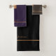 Trendy luxuoso, monograma exclusivo, preto, roxo escuro e conjunto de toalhas marrom com um quadrado fino metálico de cobre e linhas com um aspecto de na moda. Personalize-o com seu nome ou família e nome monograma inicial.