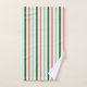 Simples, brilhante e festivo é este conjunto de toalhas de banho de três partes que é adequado para a estação de Holiday, mas que também pode ser utilizado durante todo o ano. A toalha de banho tem um fundo de floresta escura verde, com uma borda em cada extremidade de verde escuro correspondente, verde claro, branco e vermelho claro. A toalha de banho é bem contrastada com a toalha da mão e o pano de lavagem, que têm o padrão de distribuição. Linda!