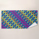Este padrão mistura formas cardíacas e formas semelhantes a chamas num estilo divertido e colorido. Cores escuras, como o teal, o roxo, o amarelo e o rosa se repetem na design, criando um olhar brilhante e vivo com um ritmo que sente cheio de movimento.
