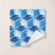 Toalha em um clássico padrão quimono japonês de gruas estilizadas, arranjadas em um padrão de hexágonos, em marinho / azul-indigo, azul-médio e branco, sobre um fundo azul-claro