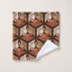 Toalha em um clássico padrão quimono japonês de gruas estilizadas, arranjadas em um padrão de hexágonos, em bronzeado, ferrugem/terracota, e creme, em um fundo castanho de chocolate escuro