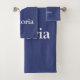 Este grupo azul de toalha de banho tem âncora s de um navio branco de '' no centro. Sob a âncora você pode personalizar a toalha ajustada com o nome do receptor.
