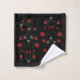 Rosas vermelhas e crânios Conjunto de toalhas de banheiro - Rosas vermelhas e pequenos esboços de esqueleto para uso doméstico Decor. design de crânio branco humano com rosas vermelhas e videiras concebidas à mão sobre fundo preto