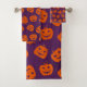 Conjunto De Toalhas Halloween Pumpkins sobre o padrão de fundo roxo