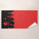 Toalha de Halloween com ilustrações falsas de derramamento de sangue vermelho e um cheio de mão assustadora de gotas de sangue vermelho em um fundo preto. Decoração ideal para o Natal de outubro.