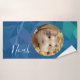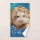 Toalha cortante e divertida com hamster fofo e design de fundo colorido. Personalize com seu nome ou iniciais.