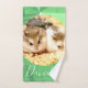 Toalha cortante e divertida com hamster fofo e design de fundo colorido. Personalize com seu nome ou iniciais.