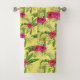 Conjunto de Toalhas de Banheiro com Flores de Hibisco Amarelo Brilhante e Rosa Tropical