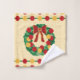 Classic holiday comfort in a timeless knit-look pattern of green Christmas trees and red Cream-colored knit-look design with a central holiday wreath, bright red bow, and garland borders. A vintage-cozy favorite.