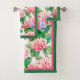 Lindas drangas cor-de-rosa e azuis com cor-de-rosa quente e verde, este conjunto de toalhas do banheiro é um sotaque perfeito para sua decoração caseira.