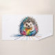 Ein freundlicher Igel in bunten Farben, eine kindliche Zeichnung eines Igels, mit Tusche und Kreide, gekleckst und geschmierte ist die Farben als Stil und Effekt des lustigen Bildes.