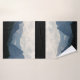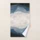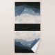 Toalha com uma fotografia de belas montanhas, céu nublado e colinas rolantes cheias de árvores em primeiro plano. esquema de cor azul da cinza.