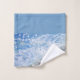 Toalhas de impressão de praia costeira em azul e preto.
