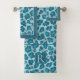 Impressão do leopardo e monograma de toalhas de banho em tons azuis. Esta moda design apresenta uma impressão de um animal leopardo com bordas azuis e monograma.