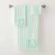 Elevem a decoração da casa de banho com as nossas roupas de cabana verde da Casa da Casa da Casa da Moeda. Iniciais monogramadas em conjunto de toalhas. Estas toalhas de banho apresentam listras brancas de cabana chic contra um fundo verde de menta refrescante, perfeito para um olhar pronto para o verão. O design minimalista é melhorado com as iniciais elegantes de monogramas, acrescentando um toque personalizado. Ideal para aqueles que amam temas náuticos e costeiros, essas toalhas combinam estilo e funcionalidade, fazer-os de tendências e sofisticação em qualquer banheiro. Mantenha-se elegante e feminino com este conjunto de toalhas de na moda.