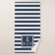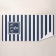 Sinais personalizados elegantes, com um conjunto de toalhas de monograma, com âncora e um padrão de riscas marinho azul e branco com as suas iniciais de monograma num quadrado marinho com bordos azuis. Projetado por Thisnotme©