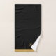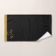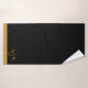 Monograma elegante personalizado, iniciais douradas, com um guião e toalha preta do banheiro, com uma borda dourada. Atualize a decoração do banheiro com um estilo tipográfico minimalista. Chic moderno único.