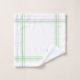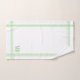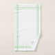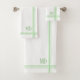 Este elegante conjunto de toalhas brancas apresenta faixas verdes juntamente com iniciais personalizáveis simplesmente colocadas nos cantos.