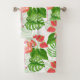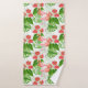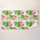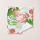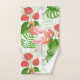 Design de padrão aquoso com flores e aves flamingos, monstera e palmeiras.