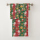 A Red And Green Christmas Pattern Of A Jolly Santa With His Elves Bath Towel Set