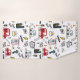 A playful, cartoon-style city pattern featuring buses, cars, helicopters, traffic lights, buildings, and fun doodle text like “Beep Beep,” “Wuz Up?” and “Go,” in bright red, yellow, blue, and black tones.