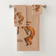 Decorre o seu banheiro com este único "Um dos tipos", no sudoeste de Kokopelli Bath Towel Set! Ele Possui Dois Cobre Kokopelli tocando flauta e dançando ao redor de um cacto debaixo do Sol...num fundo de bronzeado! Este Conjunto de Toalhas Kokopelli tem uma Cortina de Chá Correspondente e Bath Mat. Esta é uma Design de Arte Original do Artista Kerry Miller.