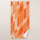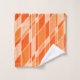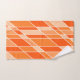 Este conjunto de toalhas tem um design geométrico em tons de laranja e branco. Divertido e brilhante.