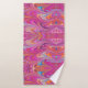 Toalha com uma design psíquica legal. Cor de rosa, laranja e pistas azuis a girar. Vírus hippie retrô.