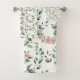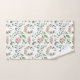 Lindos louros de rosa e rosa brancos, toalha de banheiro padrão floral em um fundo branco.