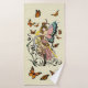 Uma fada loira Steampunk com asas rosa e azuis. A fada está vestindo roupas bonitinhas com chapéu de cima, corset e estrias, Borboletas, relógio, engrenagens e design tribal num fundo amarelo-claro
