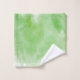 Lave verde-aquosa de folha branca moderna e monograma do conjunto de toalhas de banho. A toalha de banho apresenta uma borda de folhas de maple branco sobre lavagem a aquarela verde e seu monograma em uma moldura com contorno colocado no centro. A toalha da mão apresenta um padrão das folhas do mapa e o pano de lavagem é coberto com uma camada verde de aquarela.