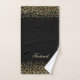 Um conjunto de toalhas de banho preto e de leopardo dourado. O conjunto inclui toalha de banho, toalha de mão e pano de lavagem. Podem ser comprados juntos ou separadamente. Personalize com seu nome ou Iniciais.
