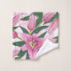 Esta ilustração apresenta uma paleta de cor rosa suave e uma grande lilha florescente com botões delicados.