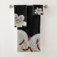 Conjunto De Toalhas Lily branca com centro roxo em fundo preto