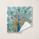 Um design verde azul-turquesa com pavões e suas belas penas. Esta elegante arte de pássaros é da minha pintura de vidro original. Inclui a opção de personalização com sua própria escolha de cor de borda. ©Annabel Potter