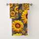 Conjunto De Toalhas Lindas flores amarelas nas cinzas, faixas pretas
