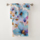Conjunto De Toalhas Lindo Flores Azuis Tinta Álcool em Pastéis Moles